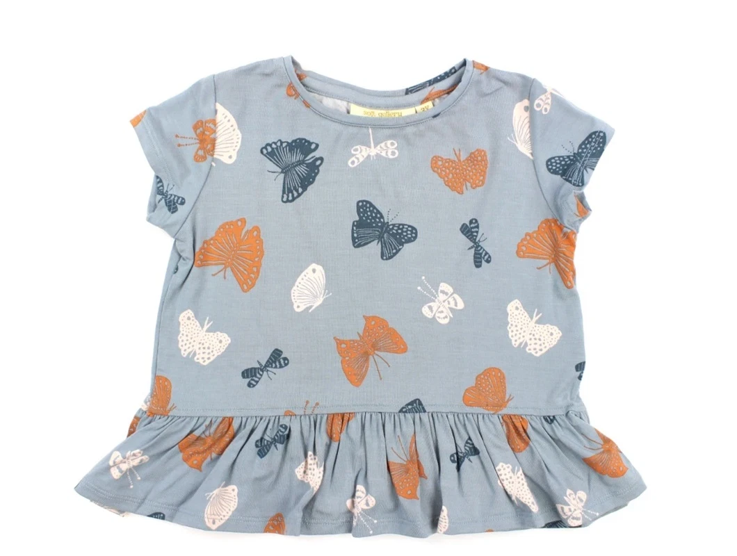 Top i farven arona med sommerfugleprint fra Soft Gallery.