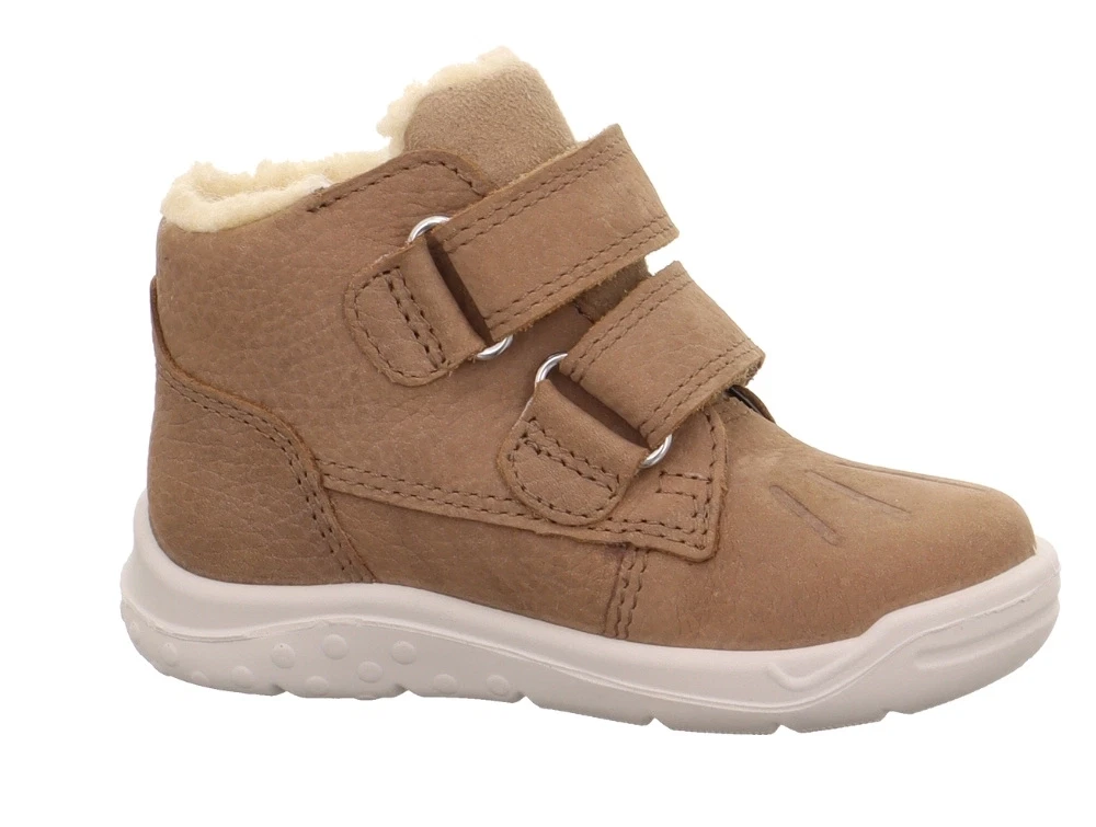 Brun vinterbegyndersko i nubuklæder fra Superfit med varmt foer.