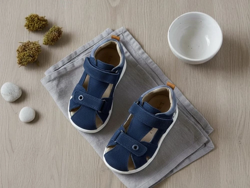Sandalen har to velcroremme og en fleksibel let gummisål og lækker blød indersål af læder.