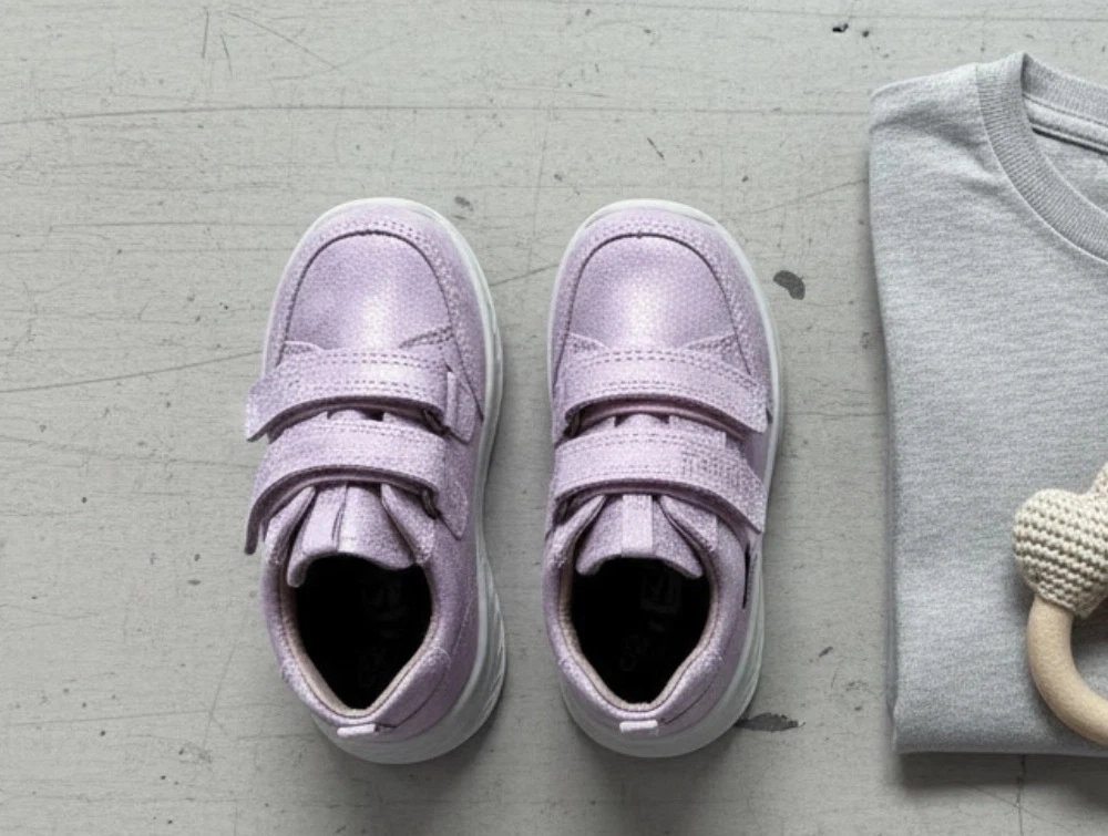 Breeze er konstrueret med en let og stødabsorberende PU-sål, som giver god fleksibilitet ved leg og bevægelse. De to velcroremme gør skoen nem at tage af og på og sikrer en justerbar pasform omkring vristen. Den bløde læderoverdel former sig naturligt om foden og giver stabil støtte uden at virke tung.