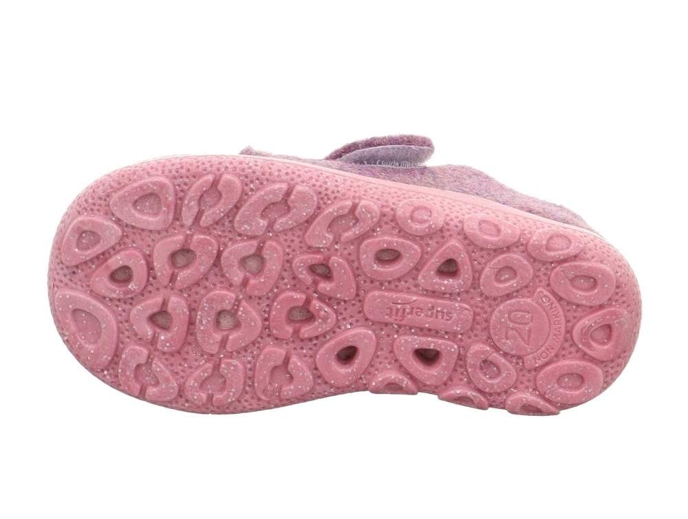 Hjemmesko i en lilla nuance fra Superfit, fremstillet i uldfilt. Modellen HAPPY OCTI har en fleksibel PVC-sål med ventilationshuller og lukkes nemt med velcrorem. Velegnet til brug i vuggestue, børnehave og skole/institution.