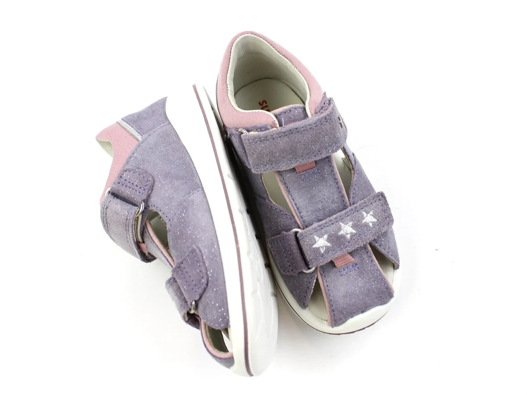 Lilla sandal med diskret glimmer i ruskind fra Superfit.
