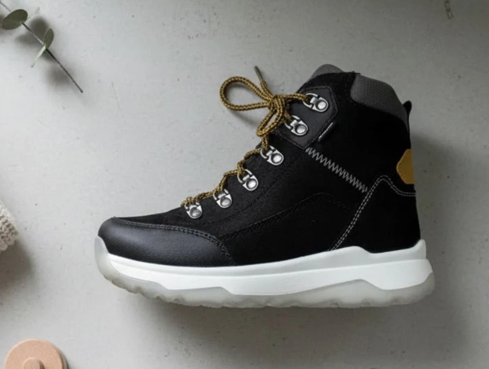 Sort vinterstøvle med grå og okkergule detaljer fra Superfit.