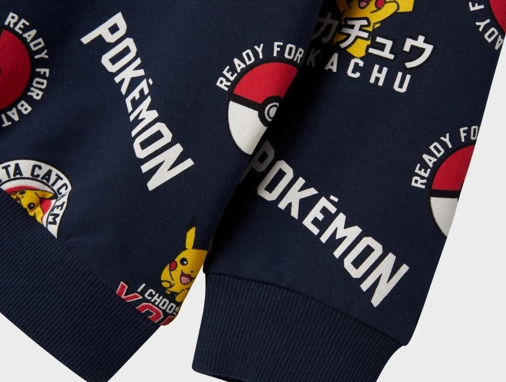 Sweatshirt i navy fra Name It med all-over Pokémon-print. Trøjen har motiver af Pikachu og Pokéballs og er perfekt til små fans af det populære univers.