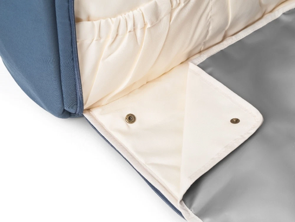 Designet er skabt til hverdagen med baby, hvor praktiske løsninger gør en forskel. Fleres store rum og lommer giver god organisering, og materialet er let at tørre af med en fugtig klud.