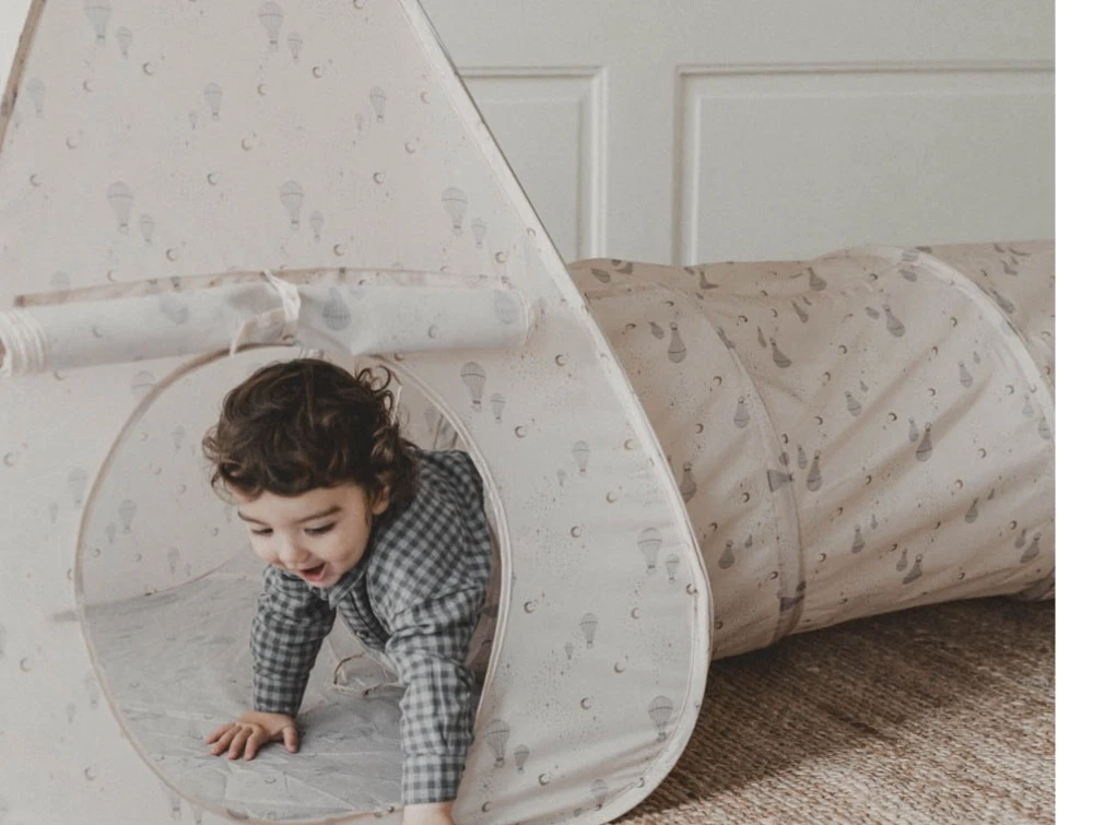 Legtelt i beige nuance med Dreamily-print fra That’s Mine. Tatum aktivitetsteltet er et praktisk og dekorativt pop-up-telt, som hurtigt bliver et hyggeligt sted for leg og fordybelse i børneværelset.