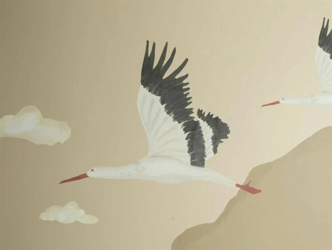 Stor wall sticker i tekstilfolie med en hvid stork fra That's Mine.