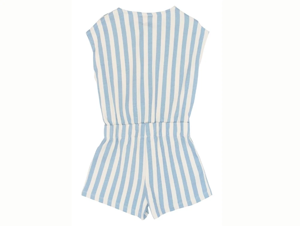 the new jumpsuit blåstribet med bindebånd produktfoto forfrathe new jumpsuit blåstribet med bindebånd set på modelthe new jumpsuit blåstribet detalje af knapperthe new jumpsuit blåstribet set bagfra