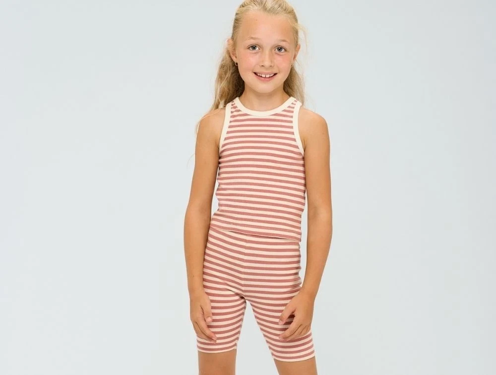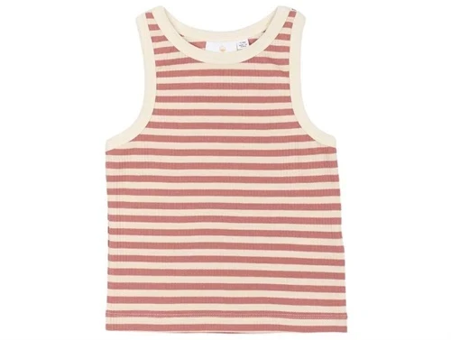 Råhvid og gammelrosa stribet tanktop fra The New Moore TN6271 Old RoseRåhvid og gammelrosa stribet tanktop i rib fra The New Moore TN6271 Old RosePige klædt i råhvid og gammelrosa stribet tanktop fra The New Moore TN6271 Old Rose