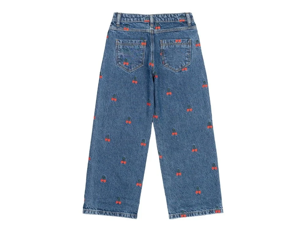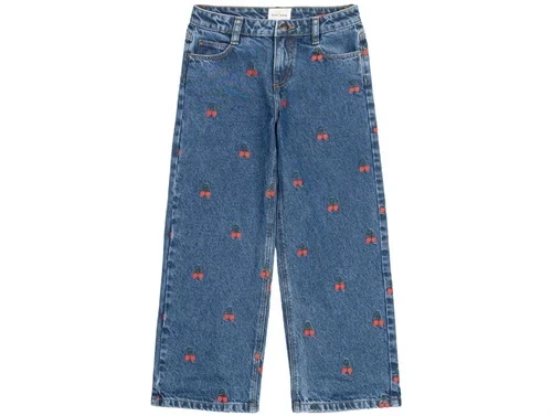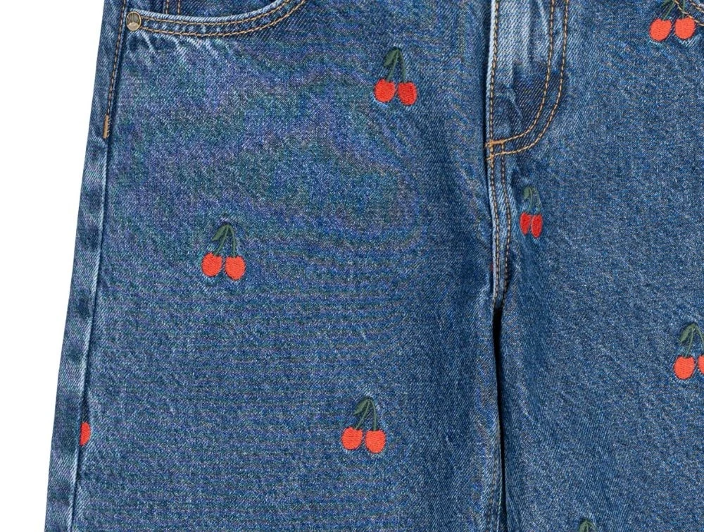 De cool jeans har en afslappet, bred pasform og fine kirsebærbroderier, der tilføjer et sødt touch. Den gode denimkvalitet gør dem både komfortable og nemme at style til hverdagens outfits.