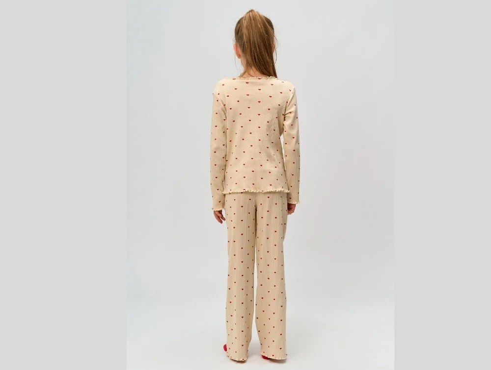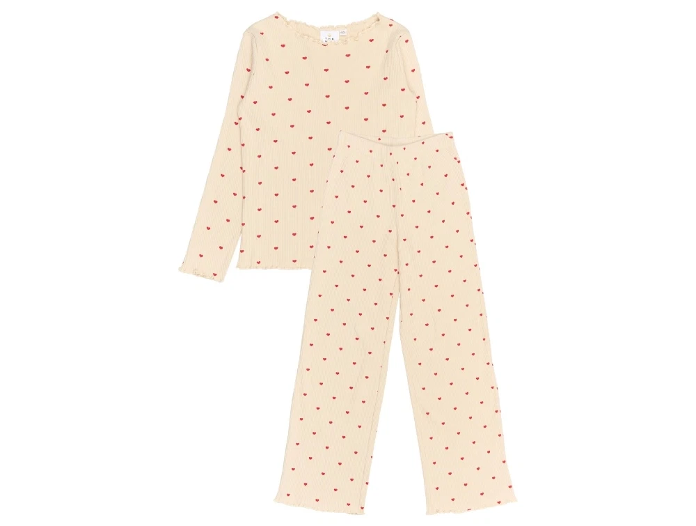 THE NEW nattøjssæt i råhvid rib med hjerteprint