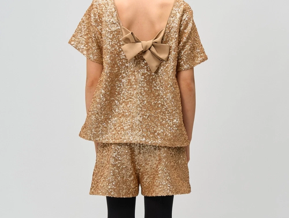 THE NEW paillet top gold med sløjfe i ryggen bagpåTHE NEW paillet top gold med sløjfe i ryggen bagpå- set på barn bagfraTHE NEW paillet top gold med sløjfe i ryggen- set på barn hel figur i festtøjTHE NEW paillet top gold med sløjfe i ryggen bagpåTHE NEW paillet top gold med sløjfe i ryggen bagpå set tæt på