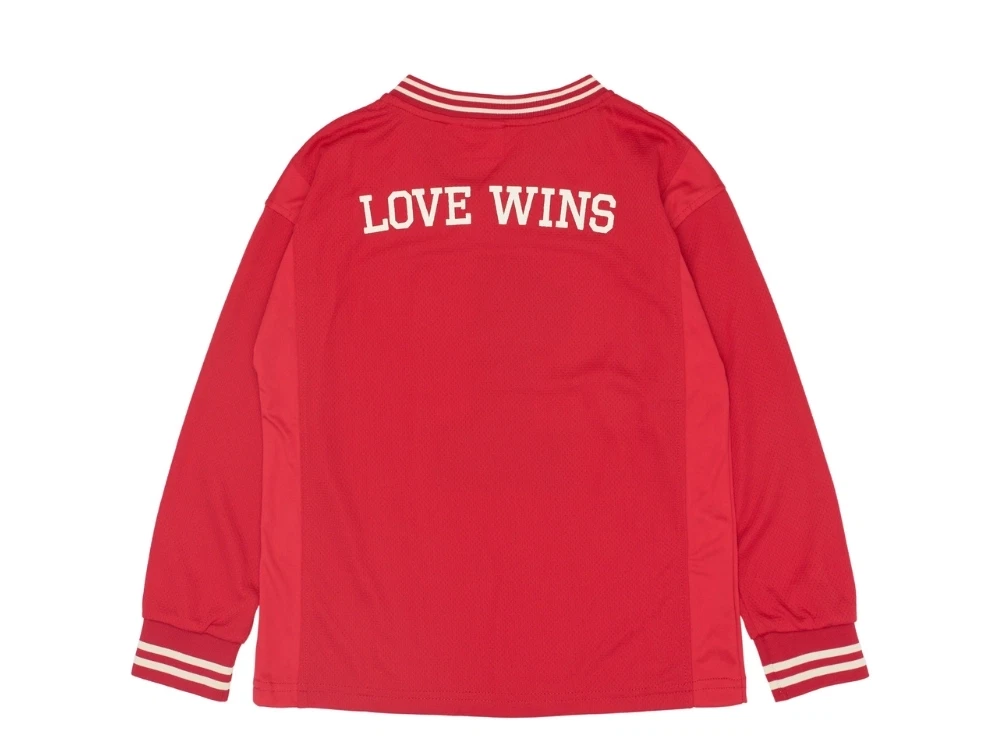 Langærmet t-shirt i rød nuance fra THE NEW. Modellen Ruby har et sporty look med tydelige statement-prints.