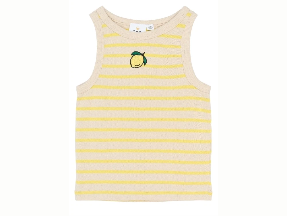 THE NEW tanktop i stribet bomuld med citronbroderi