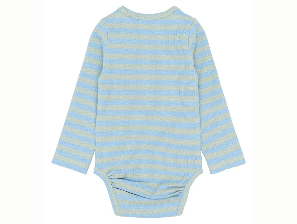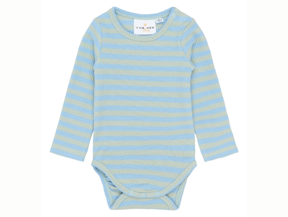 THE NEW Siblings Fro rib body forever blue striped forfraTHE NEW Siblings Fro rib body forever blue striped tæt på hals og trykknapperTHE NEW Siblings Fro rib body forever blue striped set bagfra