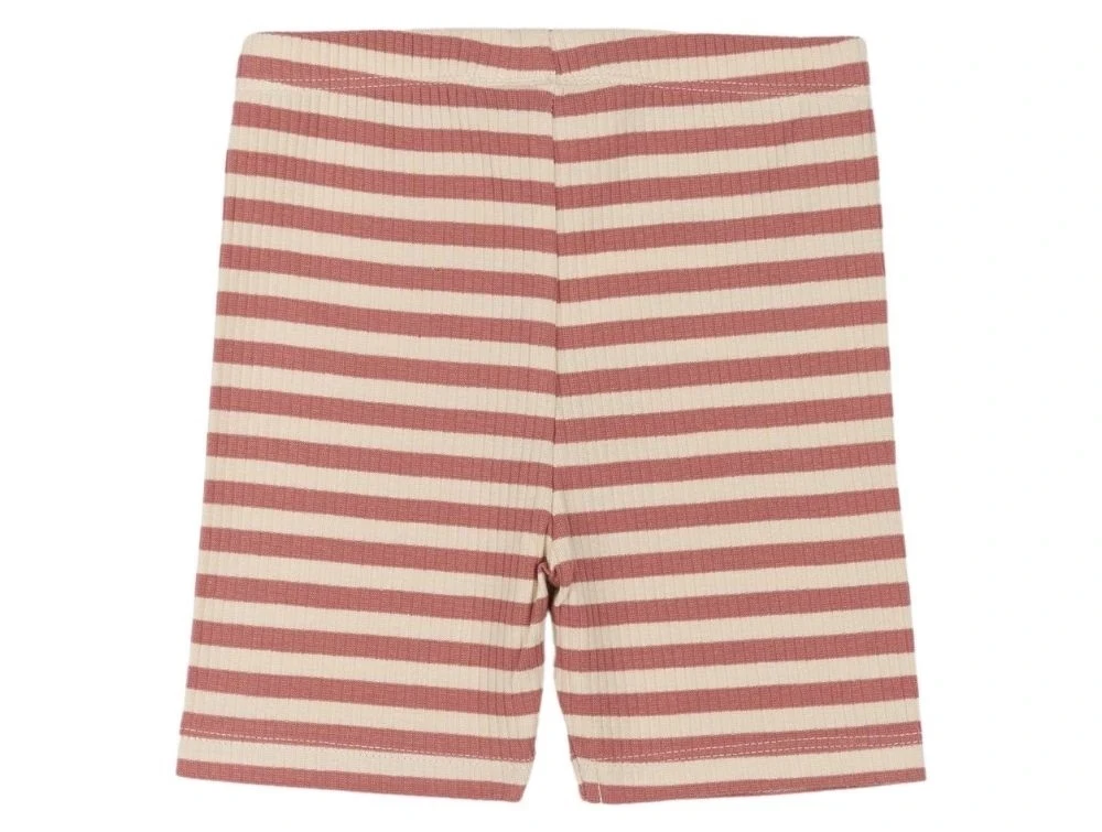 Cykelshorts i blød og elastisk ribkvalitet med bred elastik i linningen og vandrette striber i råhvid og mørk rosa. Den tætsiddende pasform og de fine farver gør shortsene nemme at matche med forskellige overdele. Kombinér med den matchende Fro t-shirt for et komplet sæt.