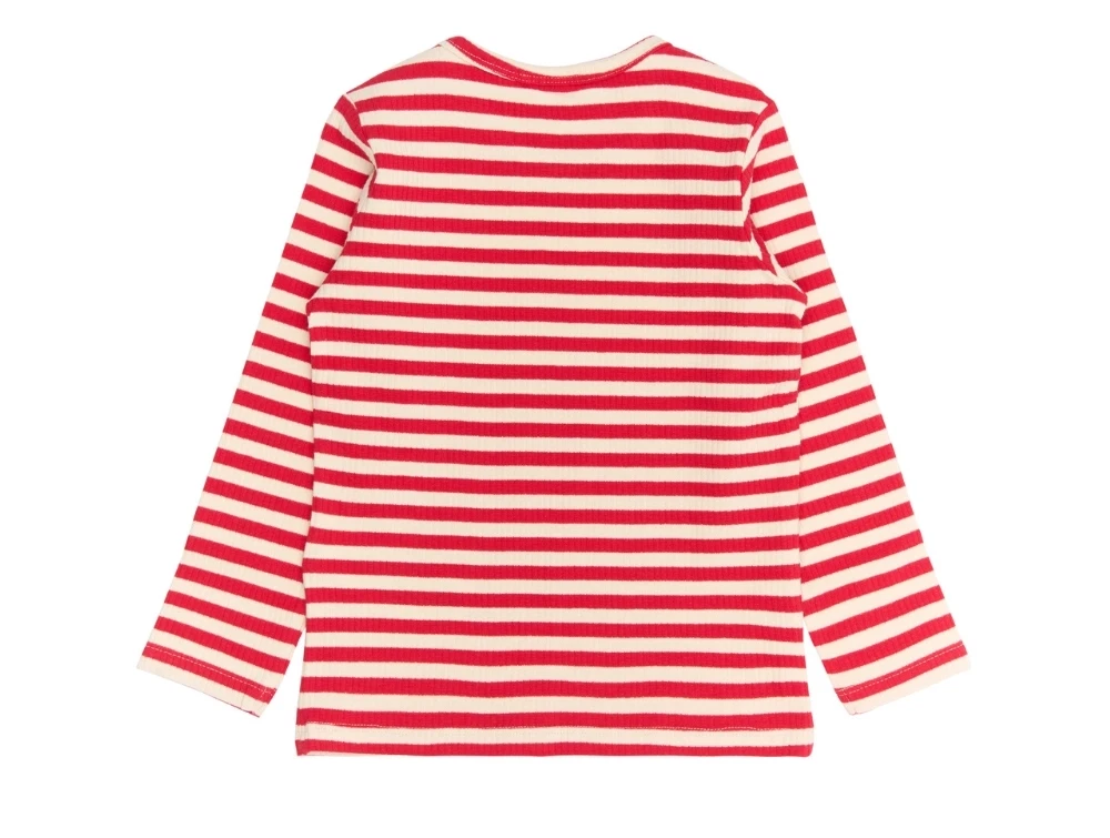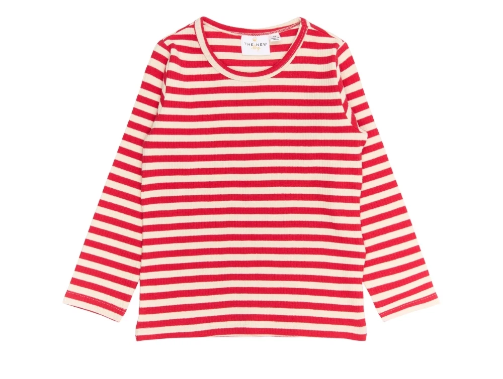 THE NEW Siblings langærmet rib T-shirt stribet rød hvid set forfraTHE NEW Siblings langærmet rib T-shirt stribet rød hvid set på barnTHE NEW Siblings langærmet rib T-shirt stribet rød hvid set bagfra