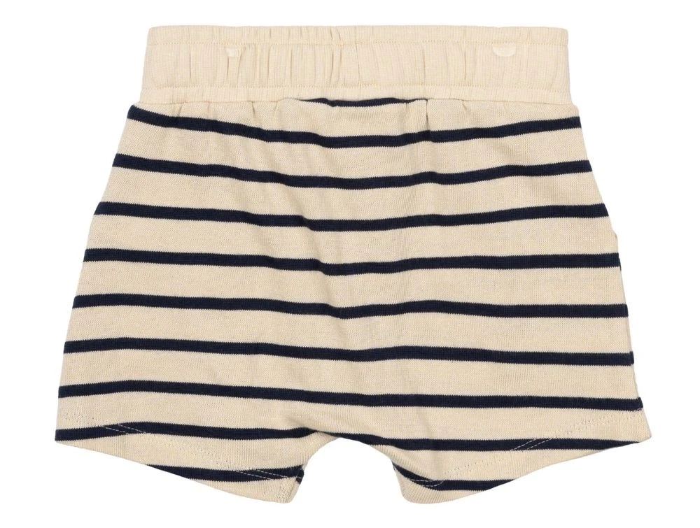 Stribede Nat shorts i råhvid med mørkeblå (mood indigo) striber fra THE NEW Siblings.