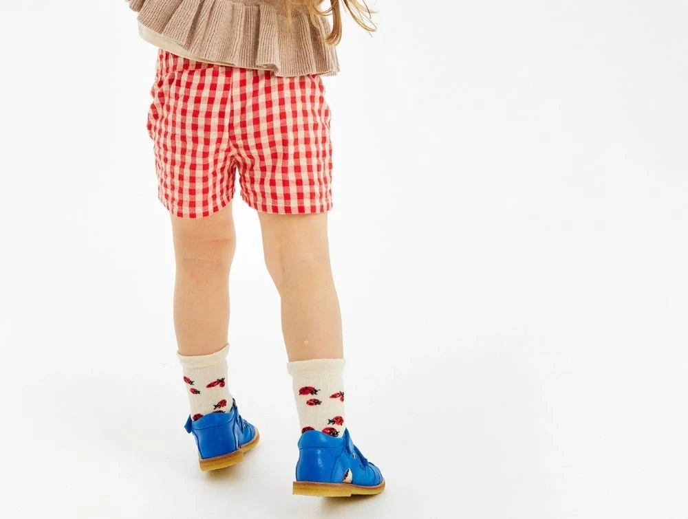 De lette og luftige shorts har et klassisk ternet mønster i en varm rød nuance. Den elastiske talje sikrer en behagelig pasform og gør dem nemme at tage af og på.