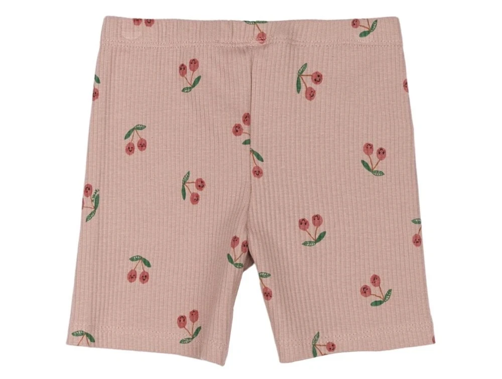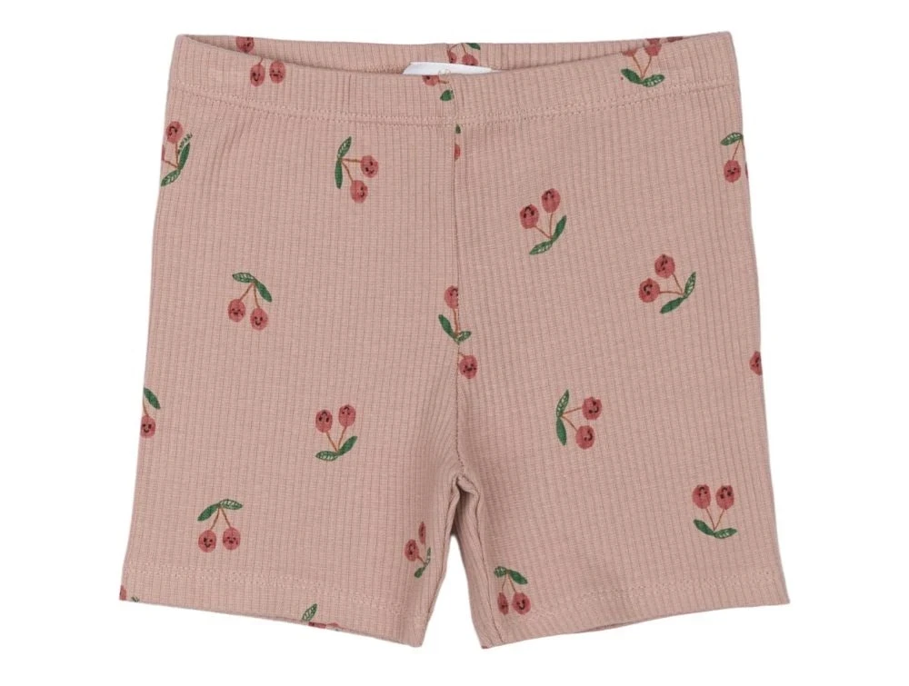 Pige i støvet rosa farvet shorts med kirsebærprint fra The New Siblings TNST6226 adobe roseShorts fra The New Siblings i lyserød med print af små smilende kirsebær TNST6226 adobe roseShorts fra The New Siblings i lyserød med print af små smilende kirsebær TNST6226 adobe rose bagfraPige i shorts i støvet rosa med kirsebærprint fra The New Siblings TNST6226 adobe rose