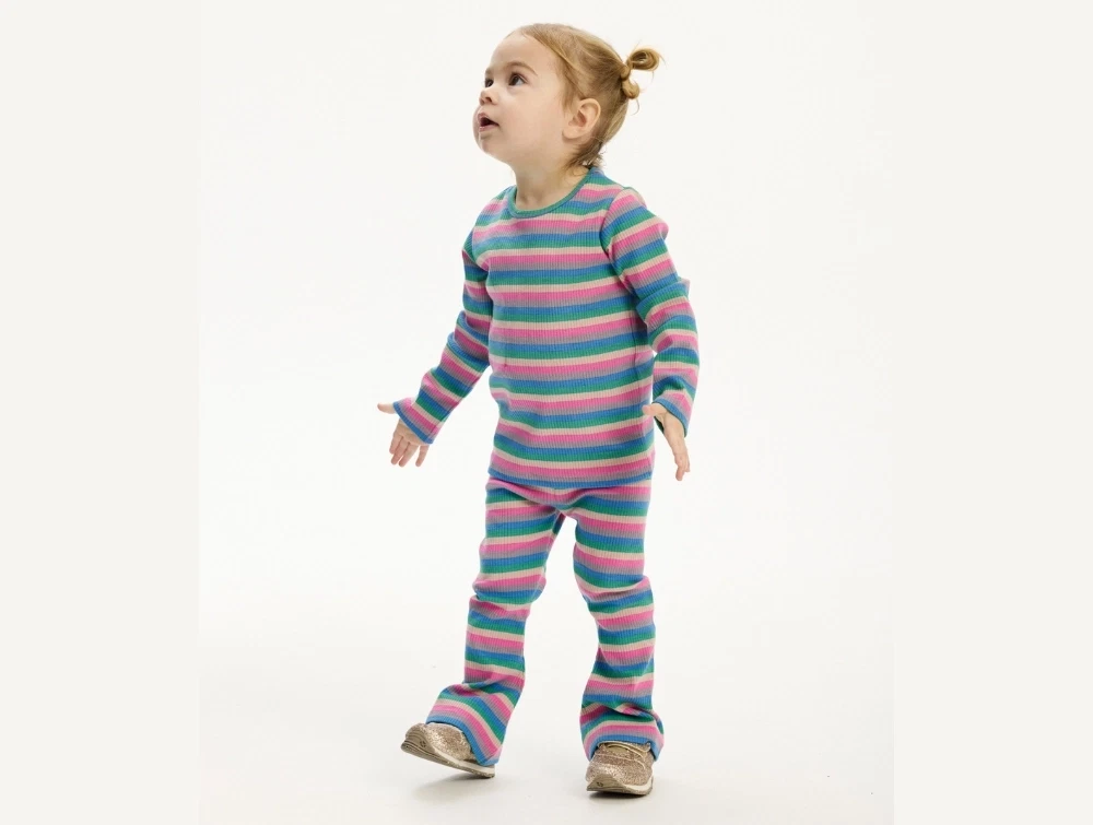 Den har en almindelig pasform, rund halsudskæring og lange ærmer. Den stribede ribstruktur giver et tidløst udtryk, der fungerer godt alene eller sammen med de matchende Polly flared ribbukser.