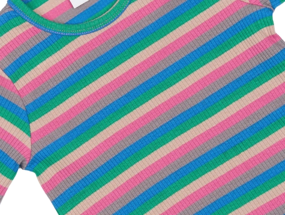 Rib t-shirt i flerfarvede striber fra THE NEW siblings. Lavet i en blød, økologisk bomuldsblanding med stræk for ekstra bevægelsesfrihed.