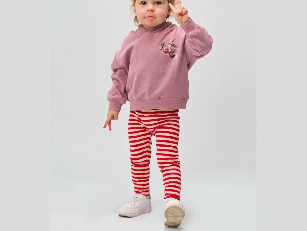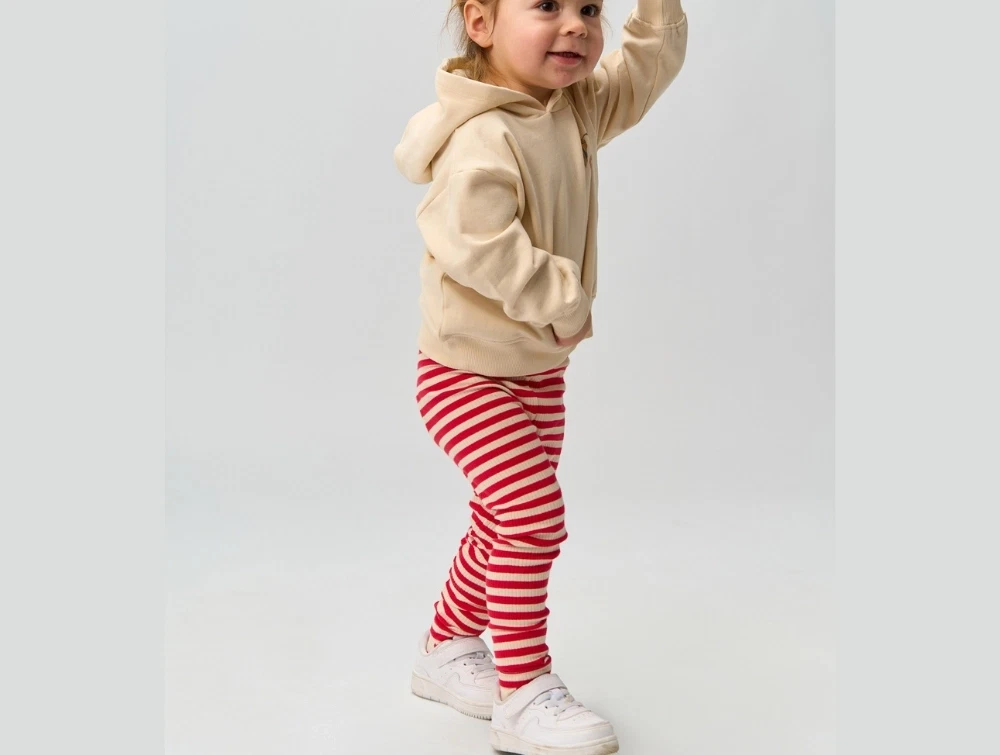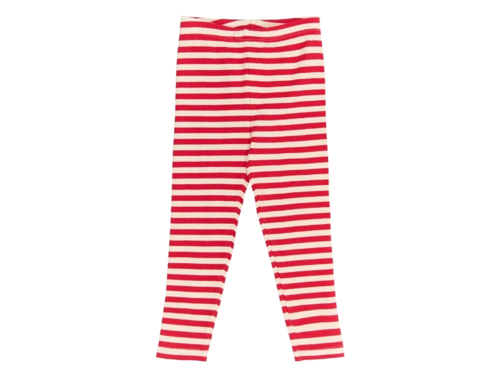 Barn iført THE NEW siblings ribleggings i rød/hvid stribetTHE NEW siblings ribleggings i rød/hvid stribetTHE NEW siblings ribleggings i rød/hvid stribet- set på barnTHE NEW siblings ribleggings i rød/hvid stribet tæt på