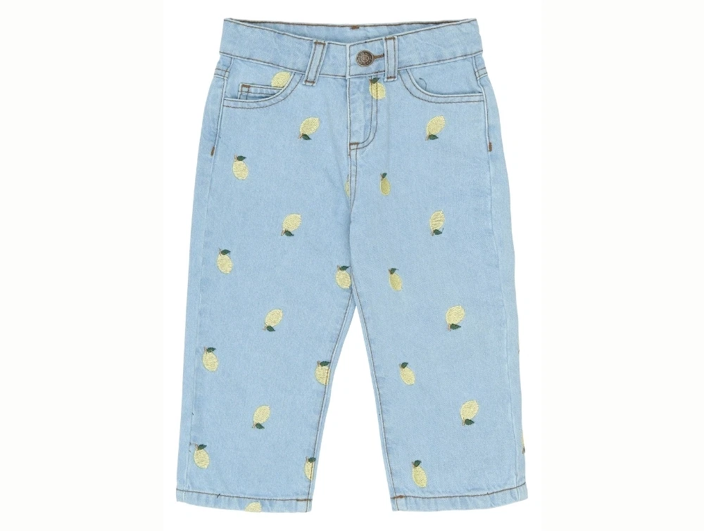 Brede jeans i lyseblå denim (light blue denim) fra THE NEW SIBLINGS med et legende allover citronbroderi.