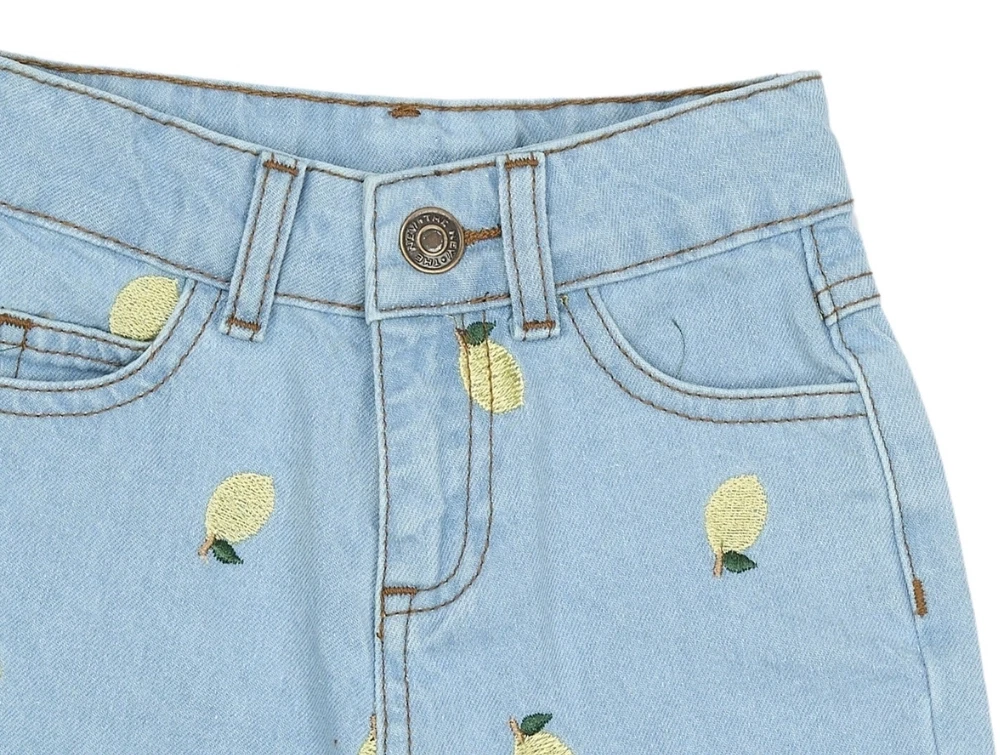 THE NEW Siblings jeans light blue denim med citronbroderi