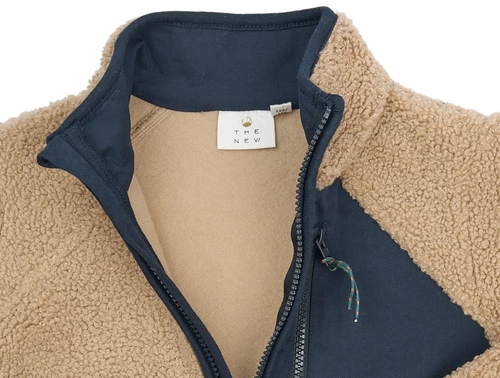 THE NEW Siblings teddyjakke i beige med mørkeblå detaljer