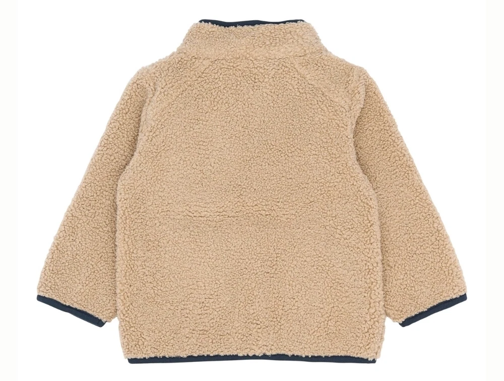 Teddyjakke i beige fra THE NEW SIBLINGS med en blød, vamset overflade og mørkeblå (navy blazer) kontrastdetaljer.