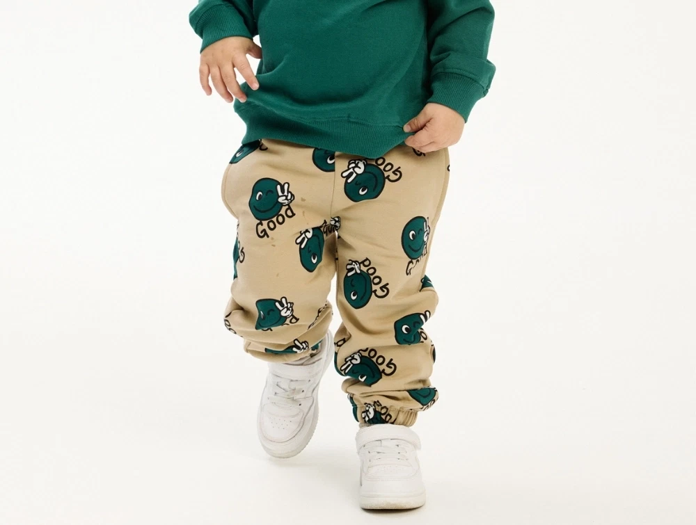 THE NEW siblings sweatpants humus med smiley print på barnTHE NEW siblings sweatpants humus med smiley print forsideTHE NEW siblings sweatpants humus med smiley print bagfra