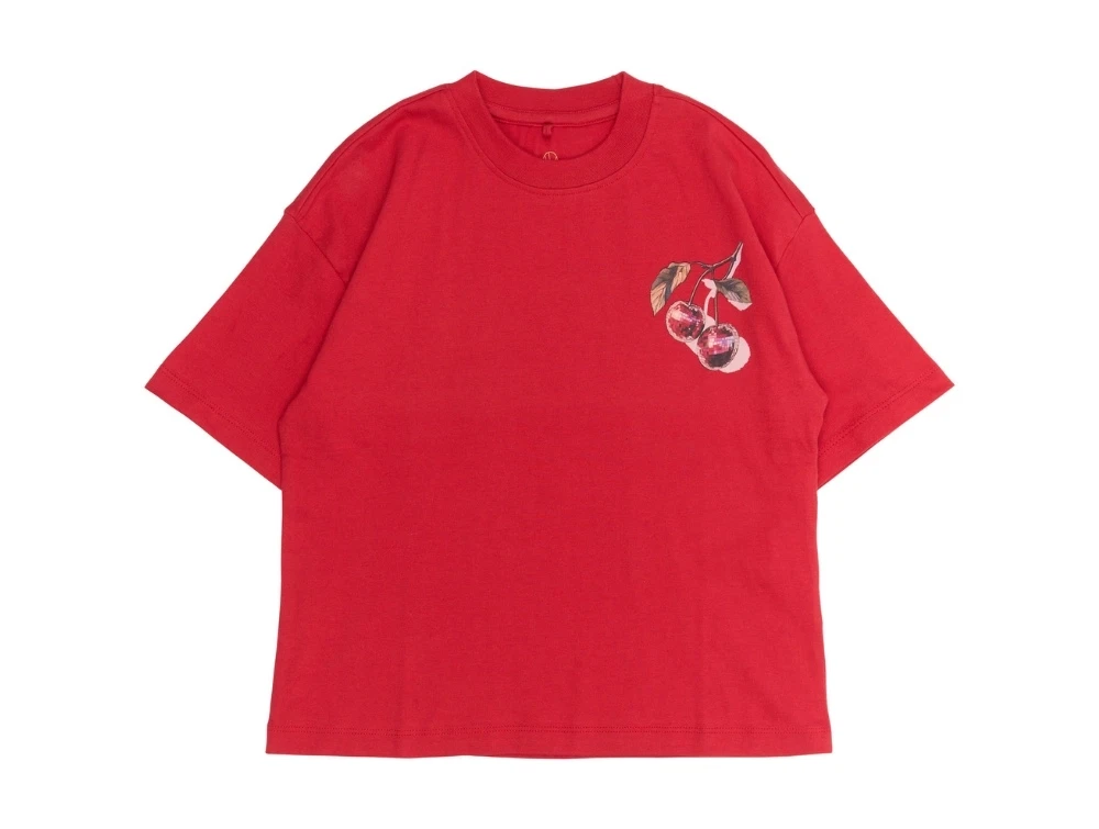 THE NEW oversized t-shirt i rød med kirsebærprint og tekst