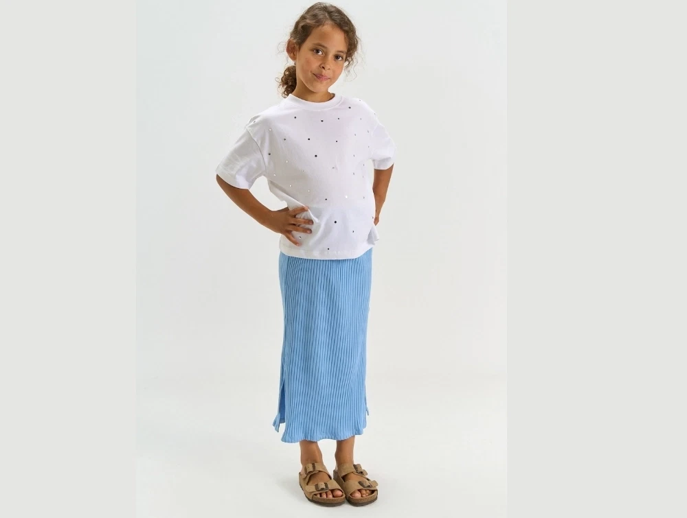 Lang ribnederdel i lys blå nuance (forever blue) fra THE NEW med en blød ribstruktur, der giver et fleksibelt og behageligt fit.