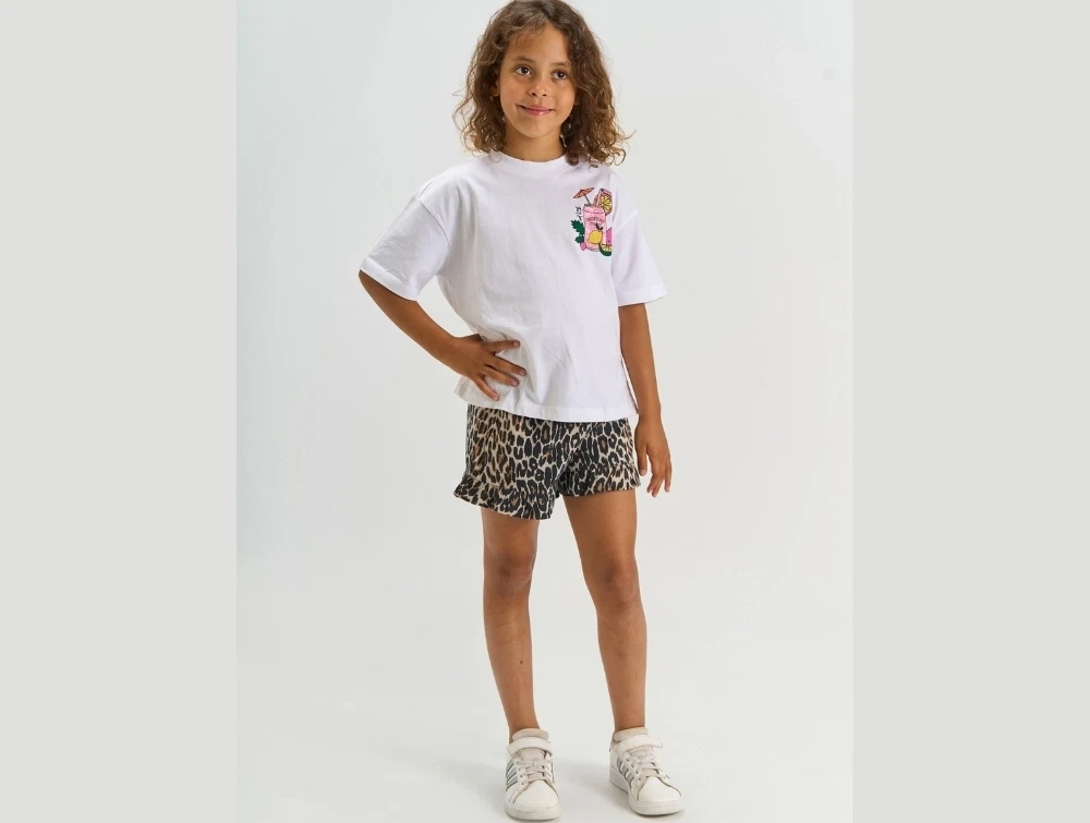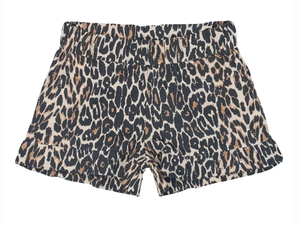 THE NEW shorts i leopardprint med flæsekant