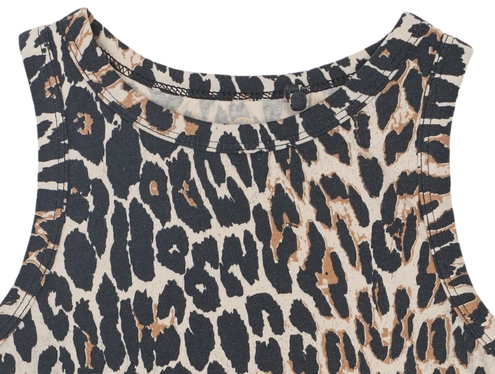 Modellen er ærmeløs med rund hals og en tætsiddende silhuet, som giver et moderne og sommerligt udtryk. Den strækbare kvalitet med GOTS-certificeret bomuld føles blød mod huden og gør toppen behagelig til både hverdag og leg.