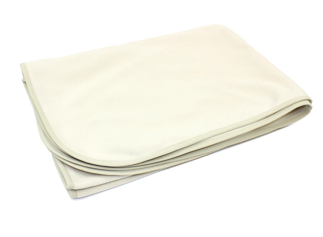 To-farvet fleece tæppe i farverne kit (sandfarvet) og vanilla (off-white) fra Ver de Terre.