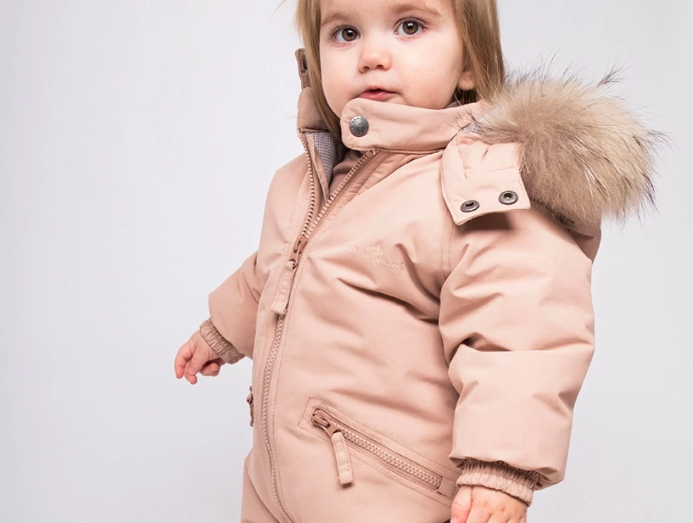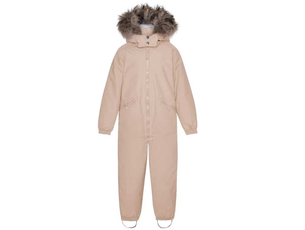 Flyverdragt i rosa nuance fra VER de TERRE med Thermolite isolering og aftagelig hætte med SAGA pelskant. Dragten har tapede sømme og et vandtæt ydermateriale med et vandsøjletryk på 10.000 mm, som giver god beskyttelse mod regn og sne.