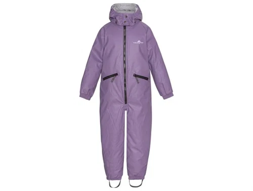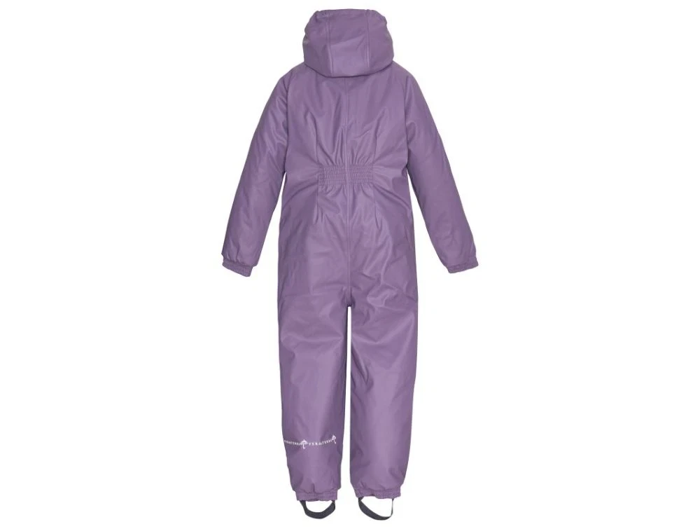 Flyverdragt i gummi i lilla (dewberry) fra Ver de Terre. Dragten har en aftagelig hætte med trykknapper.