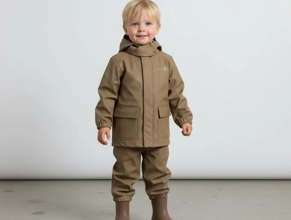 Ver de Terre regnsæt i brun nuance med hætte, PU-materiale og svejsede sømme