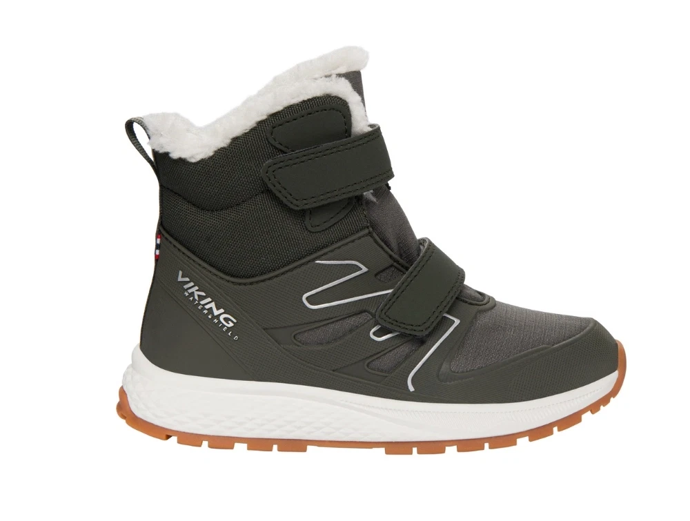 Viking Equip Defence Warm er en vinterstøvle, designet til at holde børns fødder varme og tørre i kolde måneder. Støvlen kombinerer et varmt isolerende for med Vikings Watershield-membran, så den beskytter mod både kulde og fugt. Den dobbelte velcrolukning gør det nemt for barnet selv at justere pasformen.
