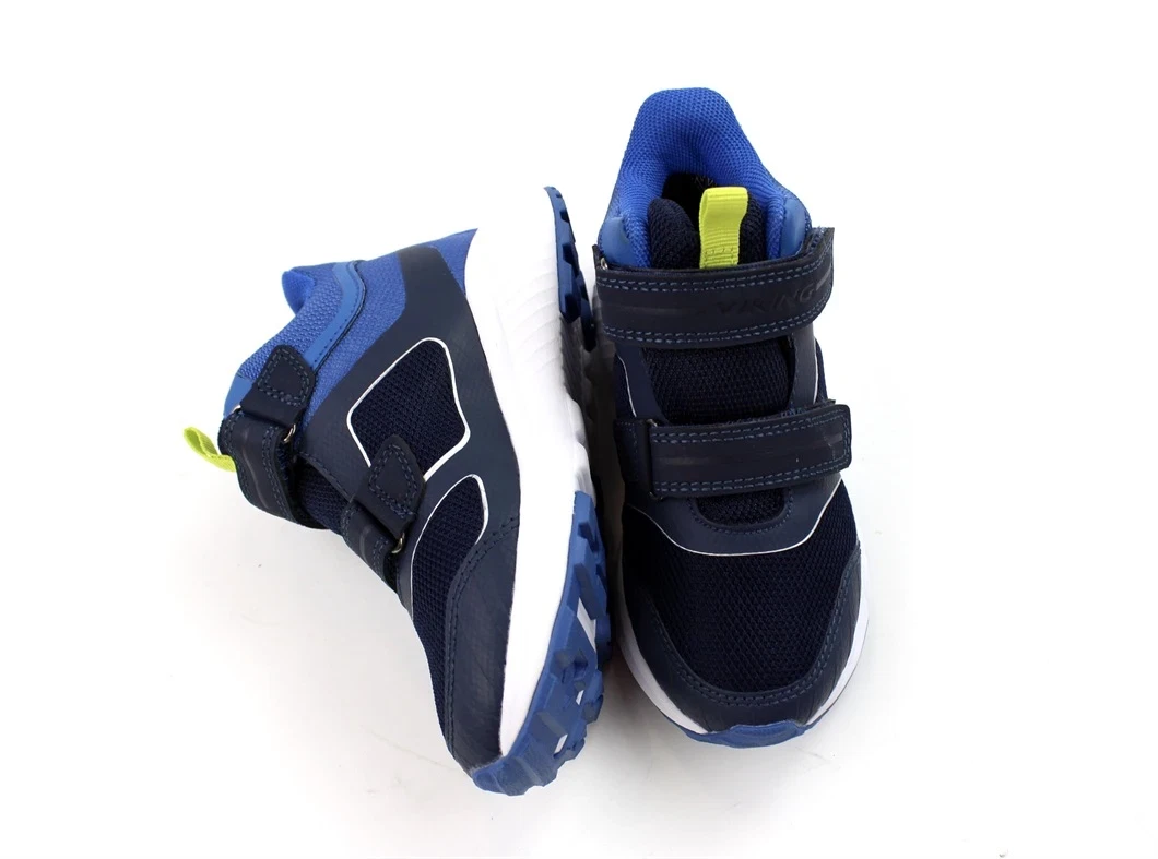 Lette mid cut støvler i farverne navy/ocean med lime-farvet strop og reflekterende detaljer fra Viking.