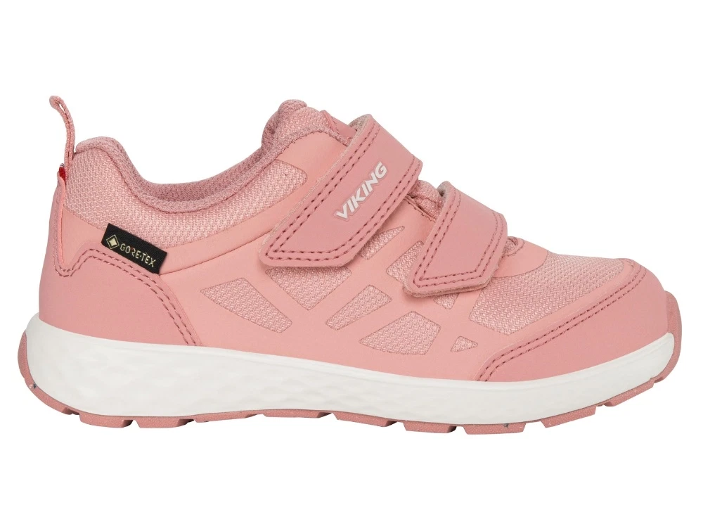 Sneaker i rosa nuance fra Viking med dobbel velcrolukning, refleksdetaljer og vandtæt konstruktion. Modellen er designet til aktiv brug og giver god komfort til både leg og hverdagsaktiviteter.