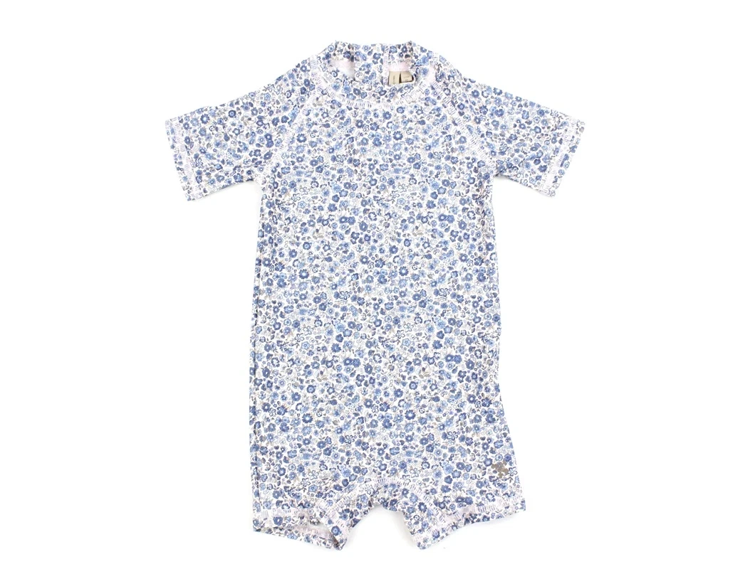 Badedragt med korte ærmer og ben med printet blue flower meadow fra Wheat.