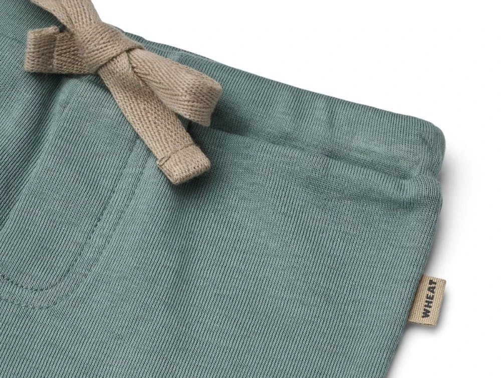 Komfortable bukser fra Wheat i en flot blågrøn (stormy sea) nuance. Fremstillet i blød økologisk bomuld, der sikrer en behagelig pasform og god bevægelsesfrihed.