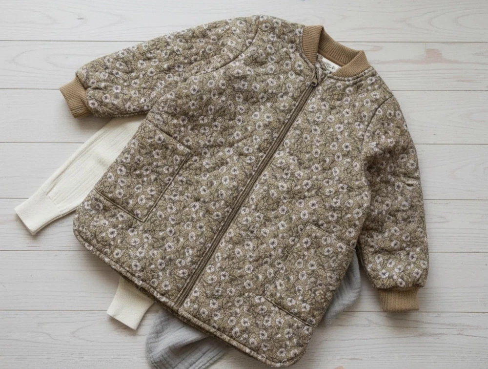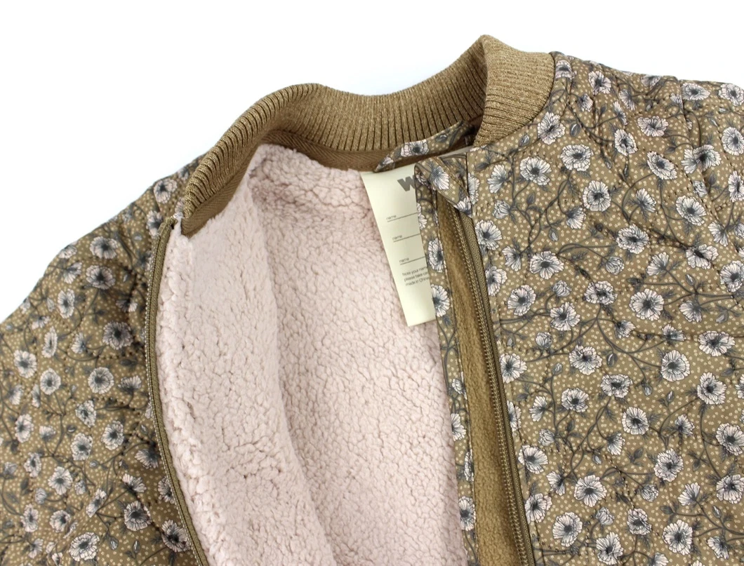 Termojakke med teddyfoer i farven/printet caramel anemones fra Wheat.