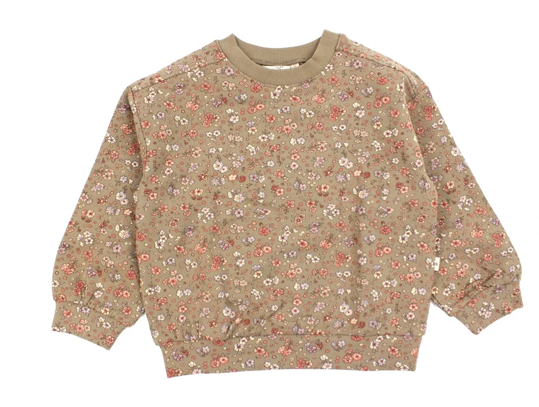 Sweatshirt i farven cocoa brown meadow med blomsterprint fra Wheat.