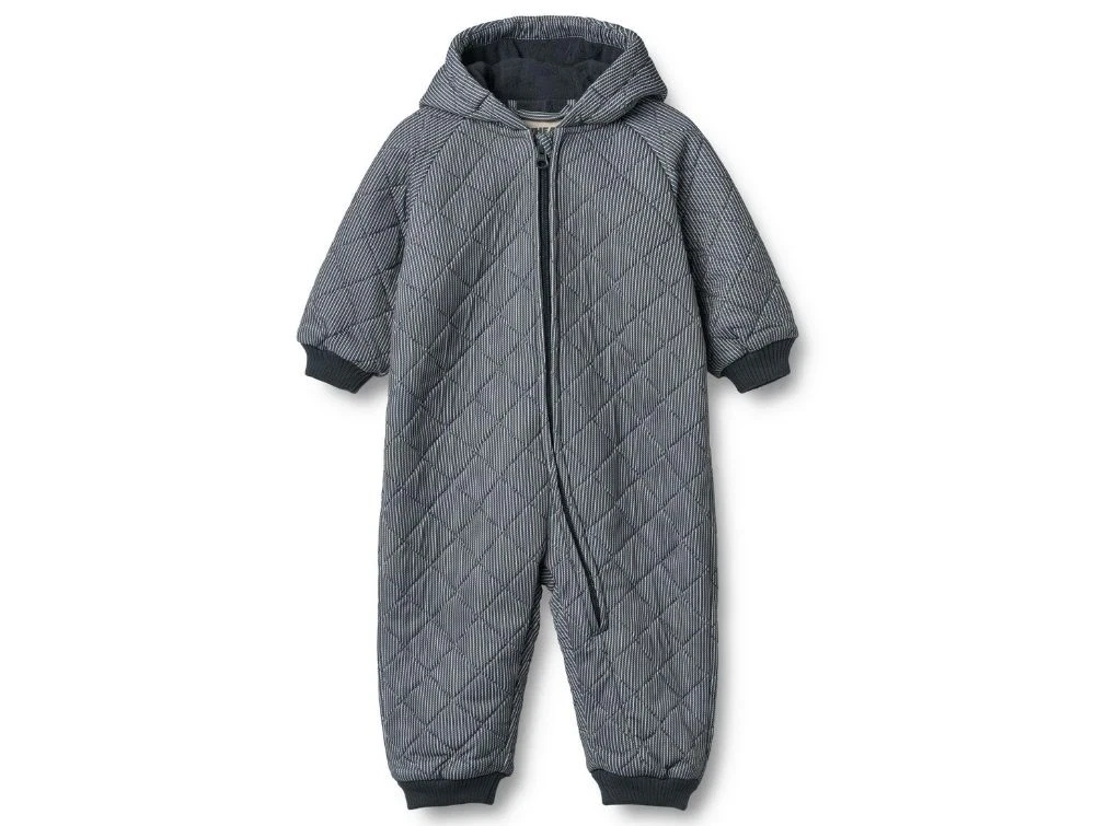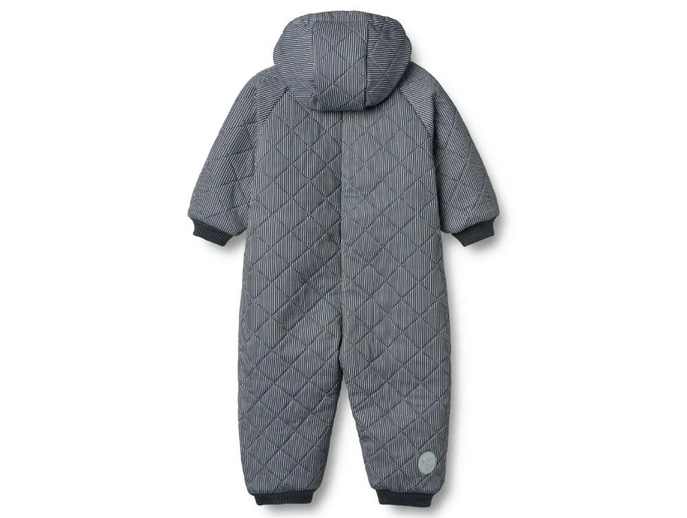 Blød og praktisk termodragt fra Wheat i en flot blå nuance med striber. Dragten er fremstillet af 100% polyester (genanvendt) og har en let og fleksibel kvalitet, der giver god bevægelsesfrihed til de mindste.