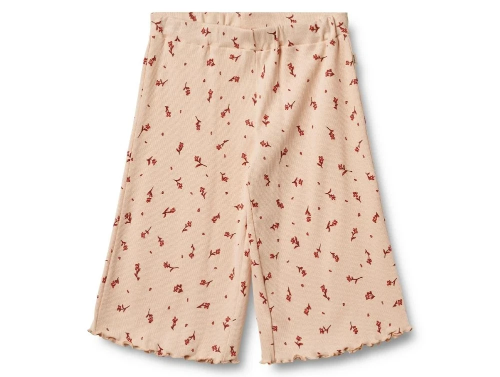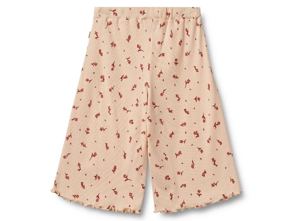 Brede culottebukser i rib med blomsterprint i farven rose water flower fra Wheat
