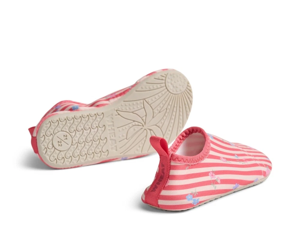 Wheat Dolphin badesko røde striber, blomster og fleksibel sål